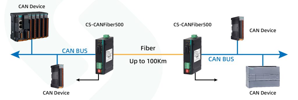 When CAN bus needs to operate over long distances or in environments with strong electromagnetic interference, a CAN to fiber optic converter is an ideal solution. These devices are typically used in pairs, with one end connected to the CAN network and the other to a fiber optic link. The converter transforms CAN electrical signals into optical signals for transmission through fiber, and then converts them back to CAN signals at the receiving end. This optical transmission method not only supports long-distance communication—ranging from tens to even hundreds of kilometers—but also provides effective isolation from electromagnetic interference and lightning risks due to the non-conductive nature of fiber.